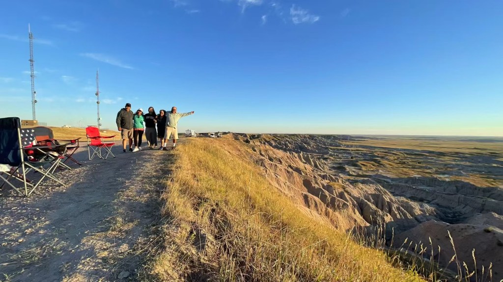 Once, when I was camping in Badlands National Park, the tents next to mine belonged to two Mexican families. That morning, the sunrise was a vivid red. They were making coffee in the back of their pickup truck. The wind lifted sand and volcanic dust into the air, along with powdered creamer swirling around us.
